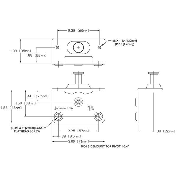 1004 Side Mount Top Pivot, 1-3/4” [44mm] Panel