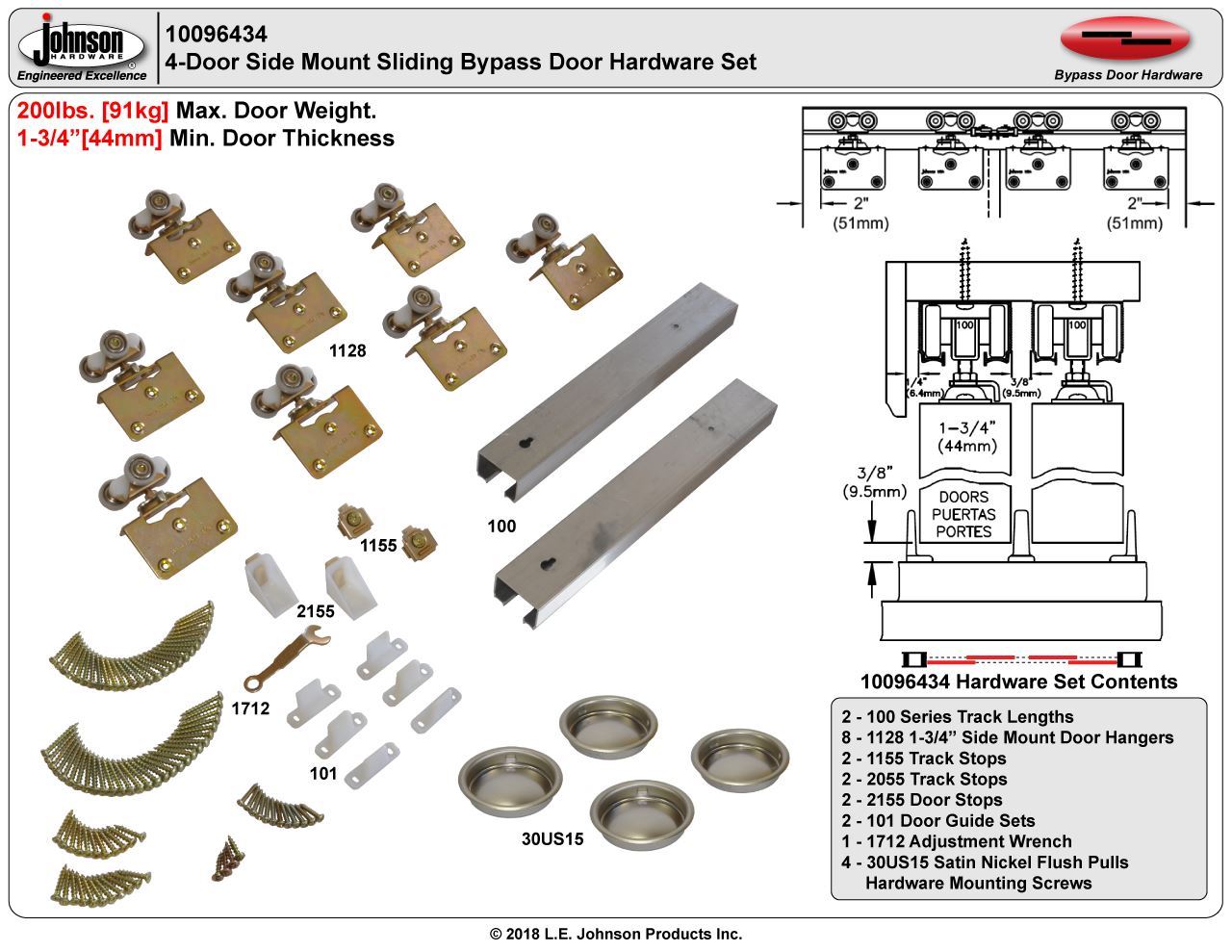 | Max. Weight Per Door | 200lbs. [91kg] |