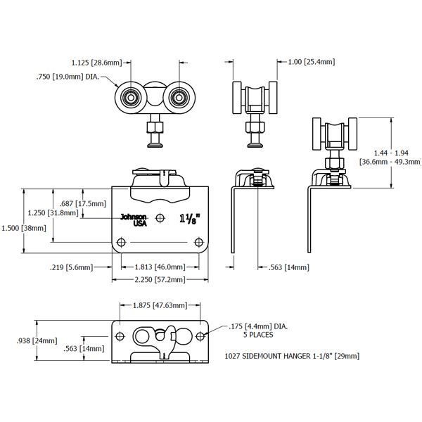 1027 Side Mount Hanger 1-1/8" [29mm] Door