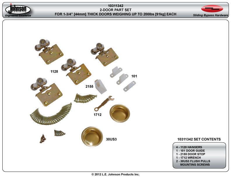 10311342 2-Door Part Set, 1-3/4" [44mm] Door
