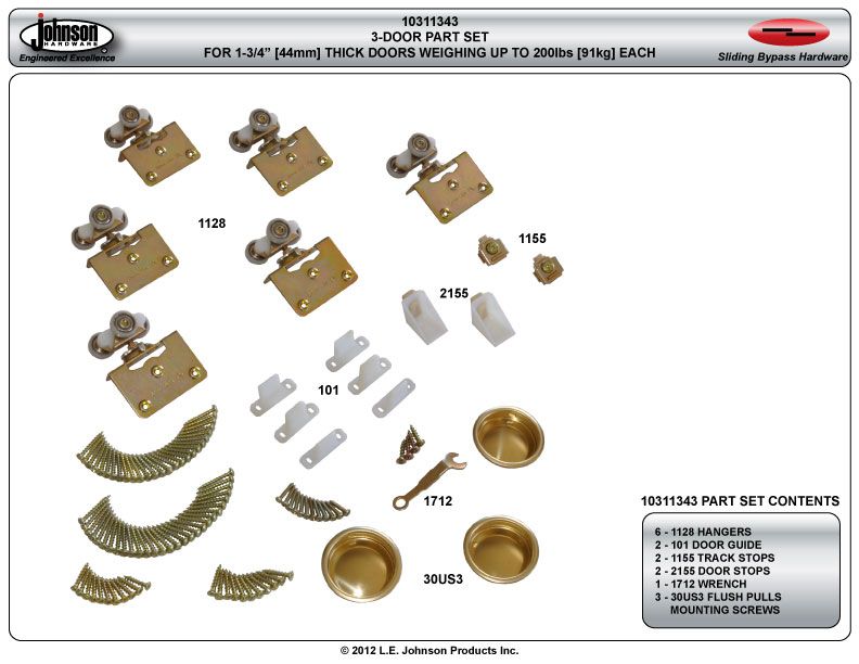 10311343 3-Door Part Set, 1-3/4" [44mm] Door
