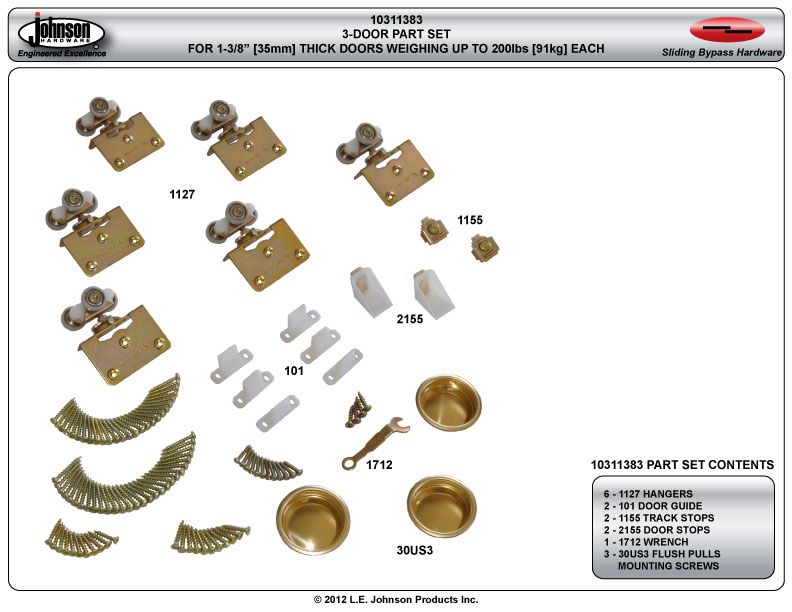 10311383 3-Door Part Set, 1-3/8" [35mm] Door