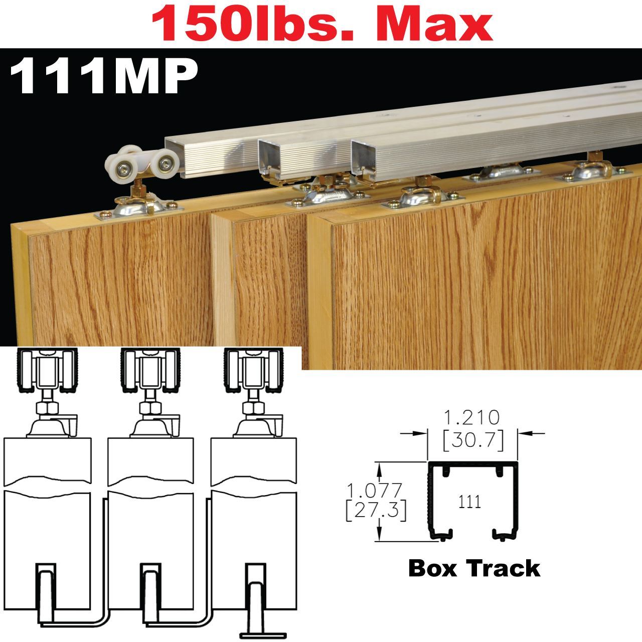 111MP Tri-Pass Pocket Door Hardware