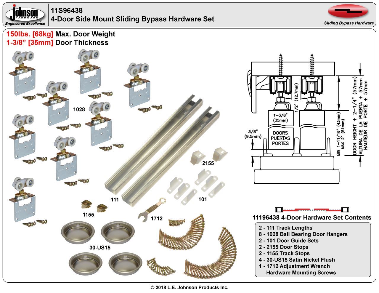 | Max. Weight Per Door | 150lbs. [68kg] |
