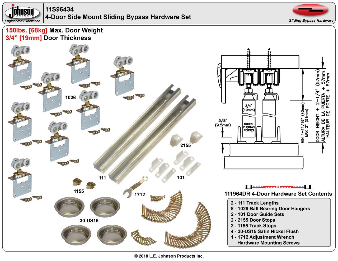| Max. Weight Per Door | 150lbs. [68kg] |