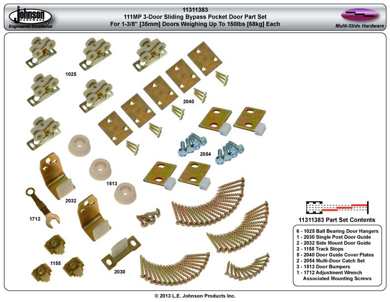 11311383 111MP 3-Door Part Set, 1-3/8" [35mm] Door
