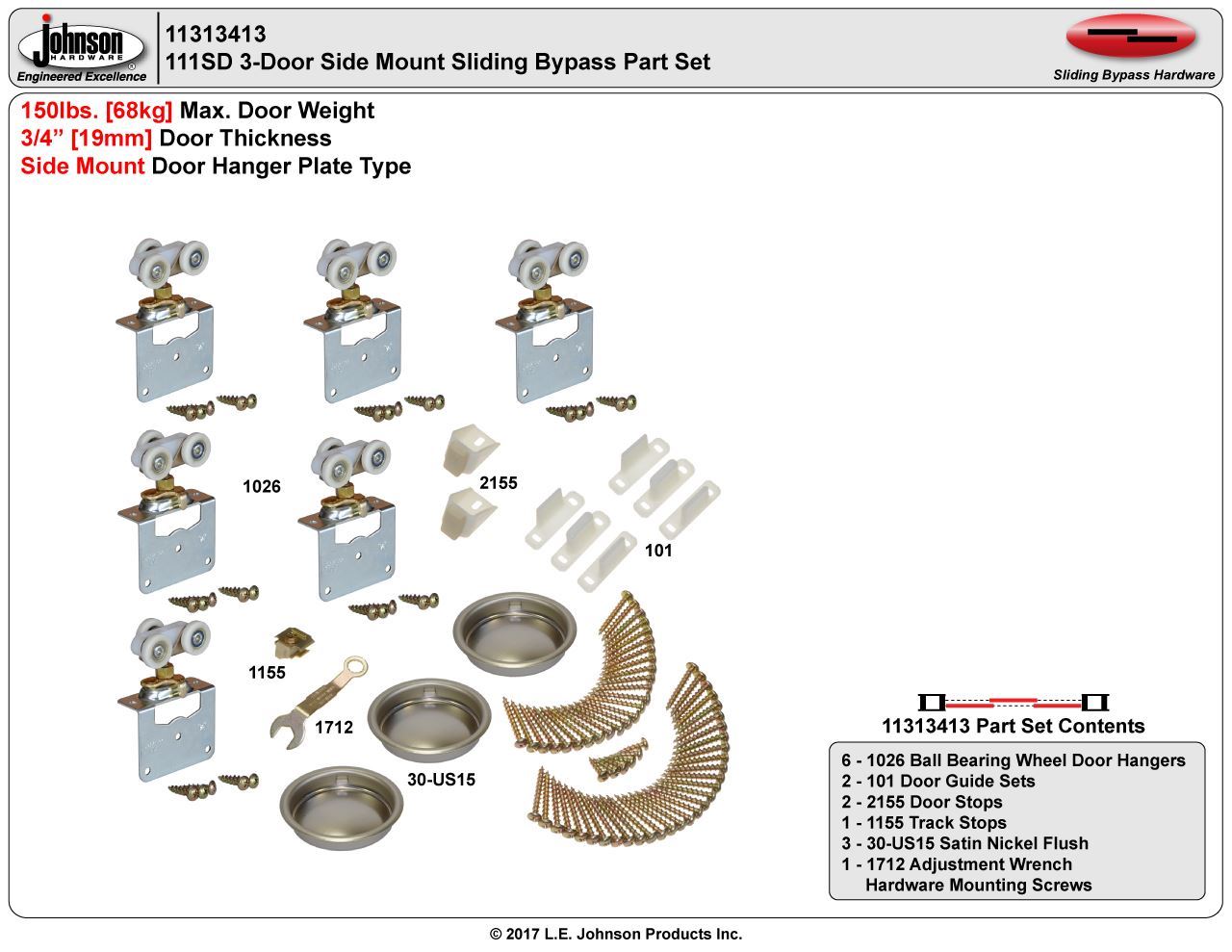 11313413 3-Door Side Mount Part Set, 3/4" [19mm] Door