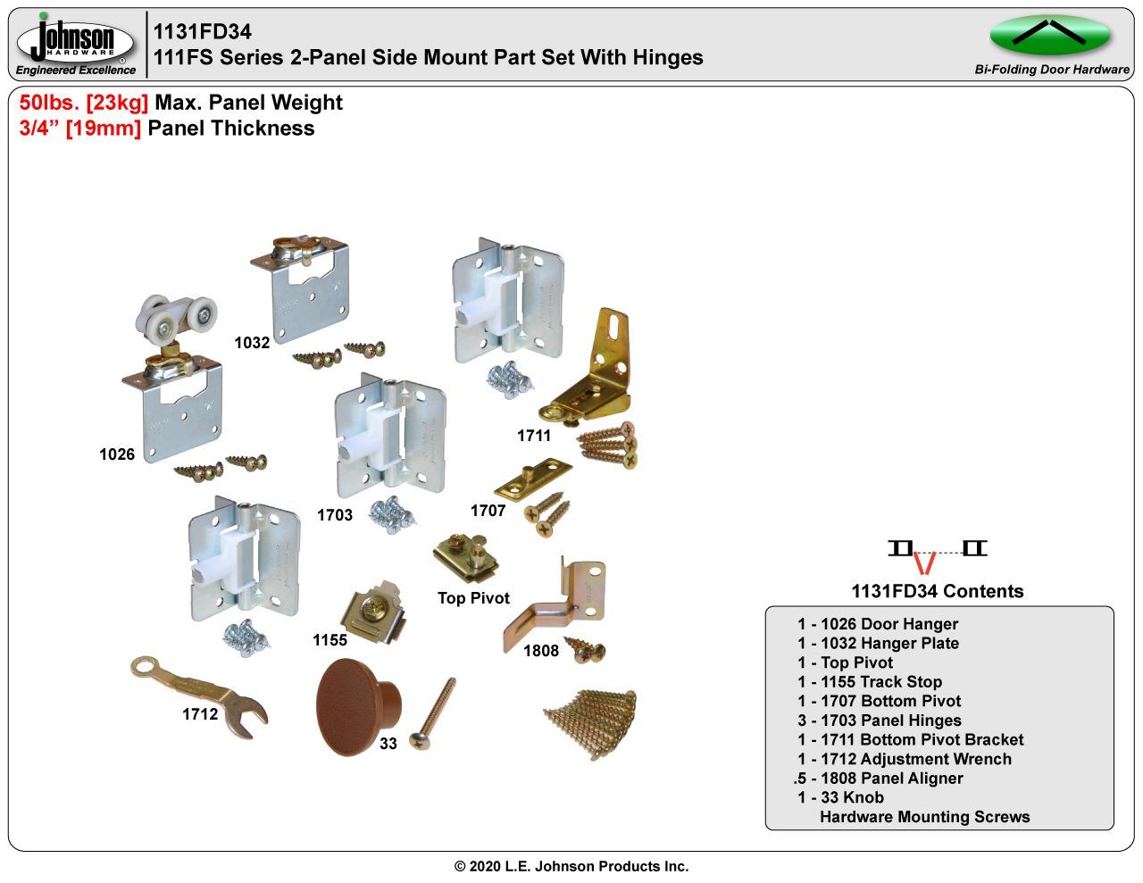 1131FD34 2-Panel Side Mount Part Set W/Hinges, 3/4" [19mm] Panels