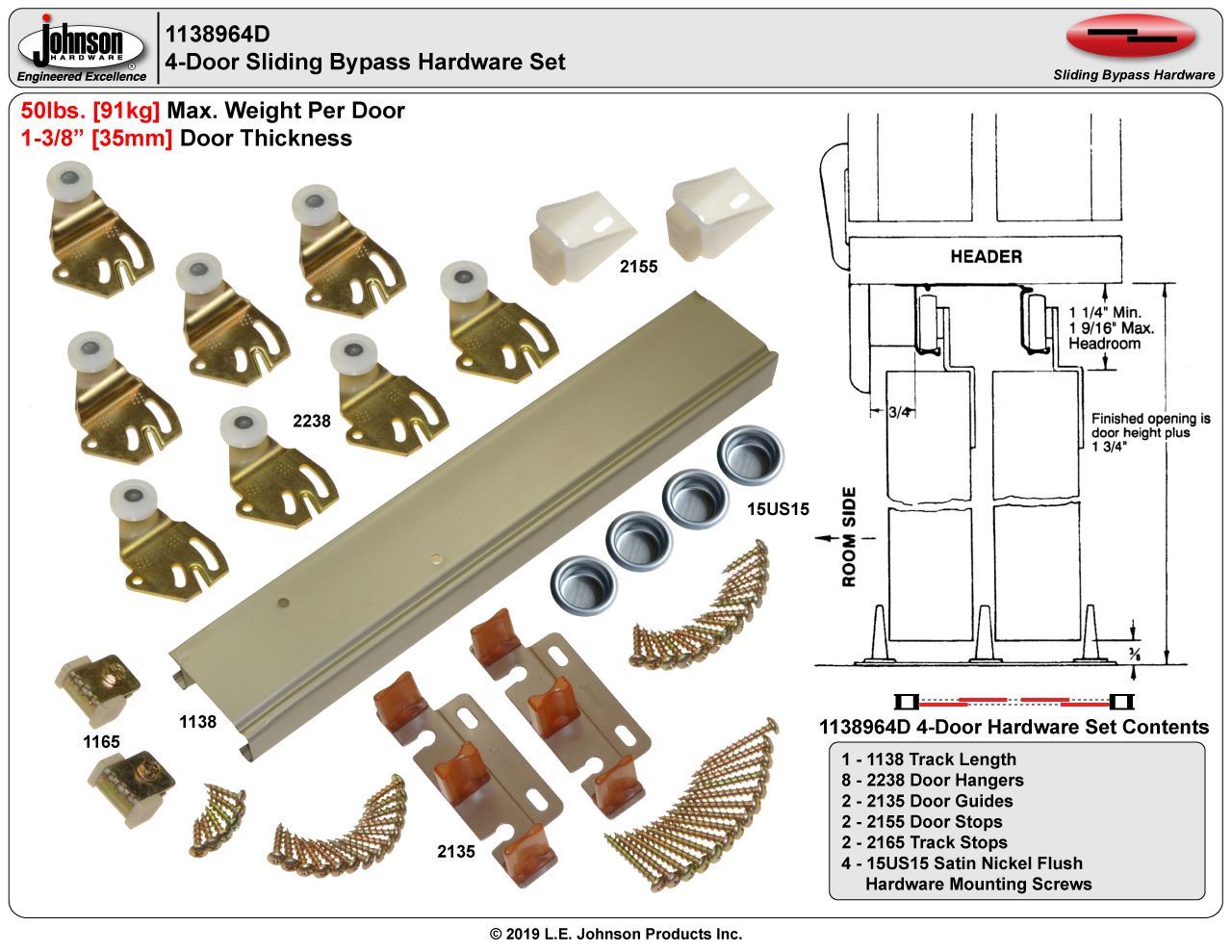 • 1-3/8" [35mm] Door Thickness