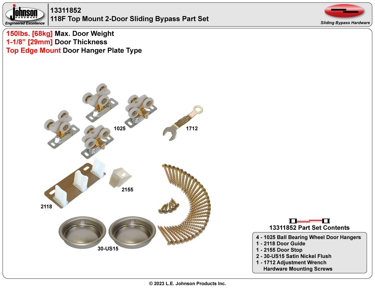 11311852 118F 2-Door Part Set, Ball Bearing Wheel Hanger