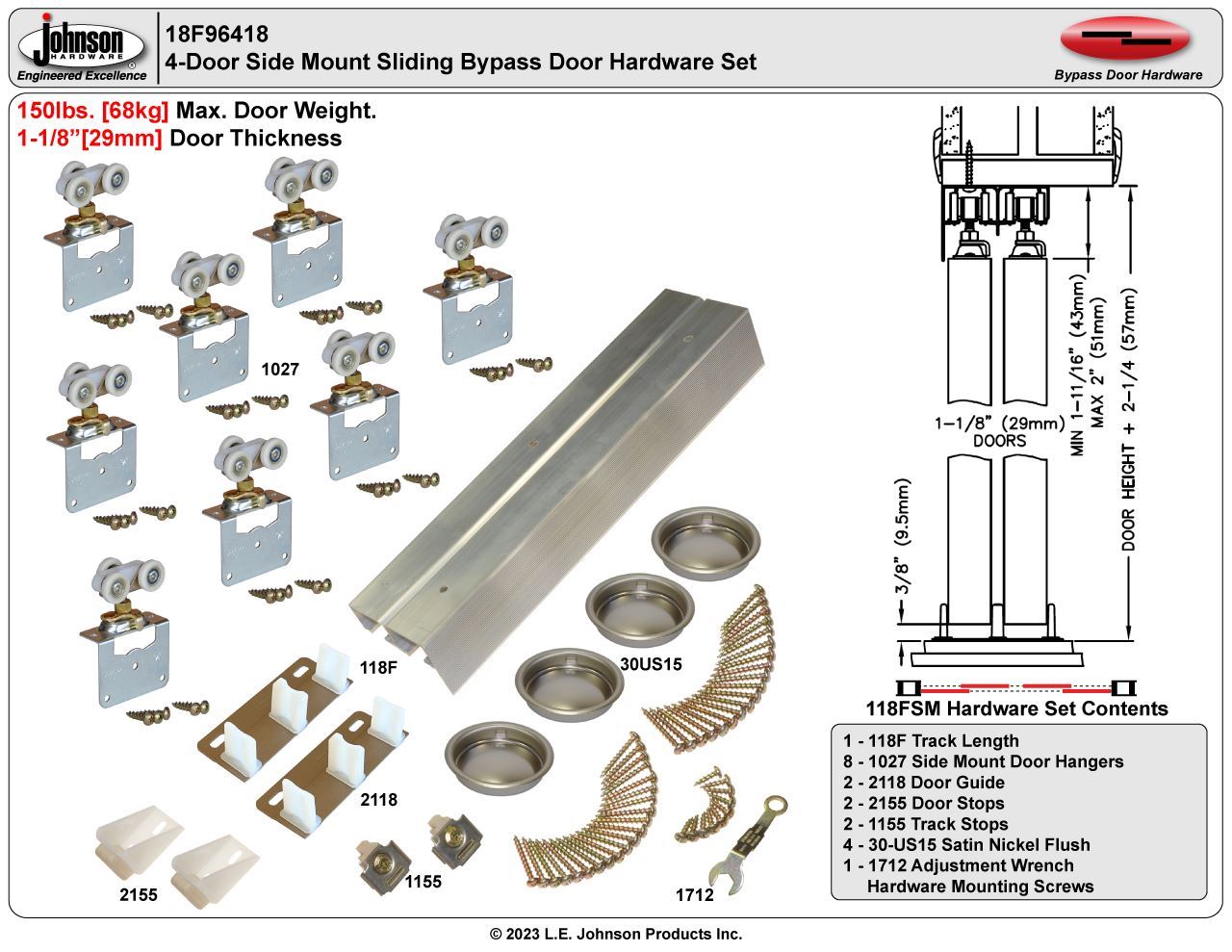 | Max. Weight Per Door | 150lbs. [68kg] |