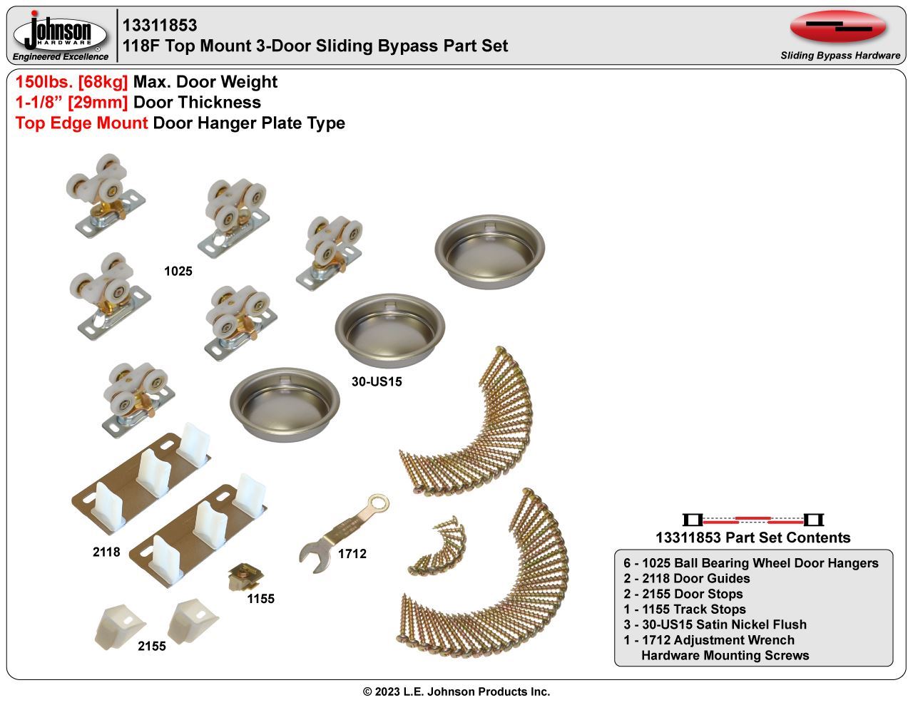 11311853 118F 3-Door Part Set, Ball Bearing Wheel Hanger