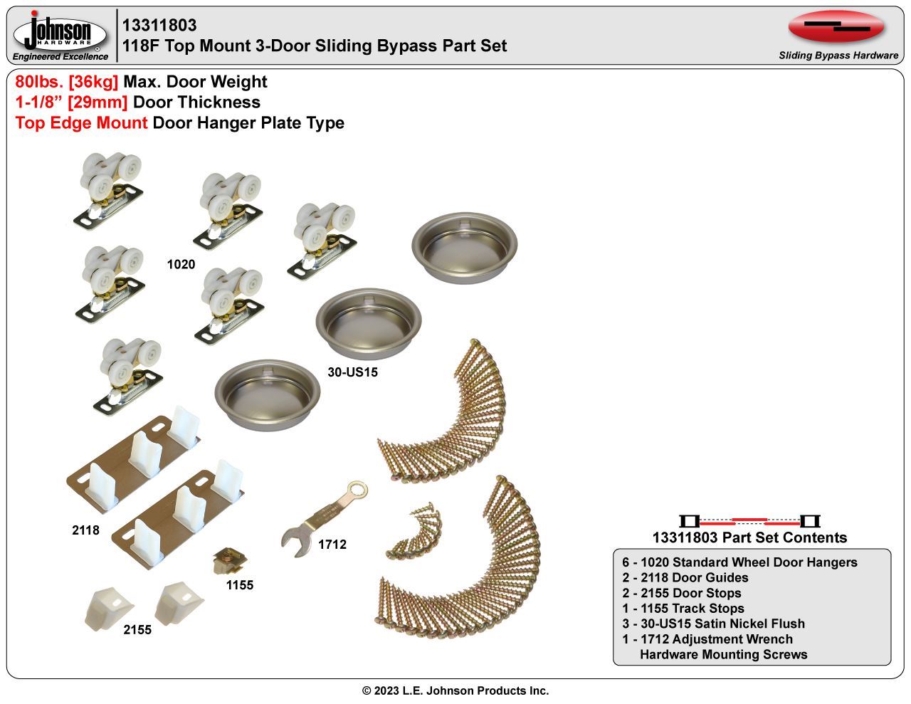 11311803 118F 3-Door Part Set, Nylon Wheel Hanger