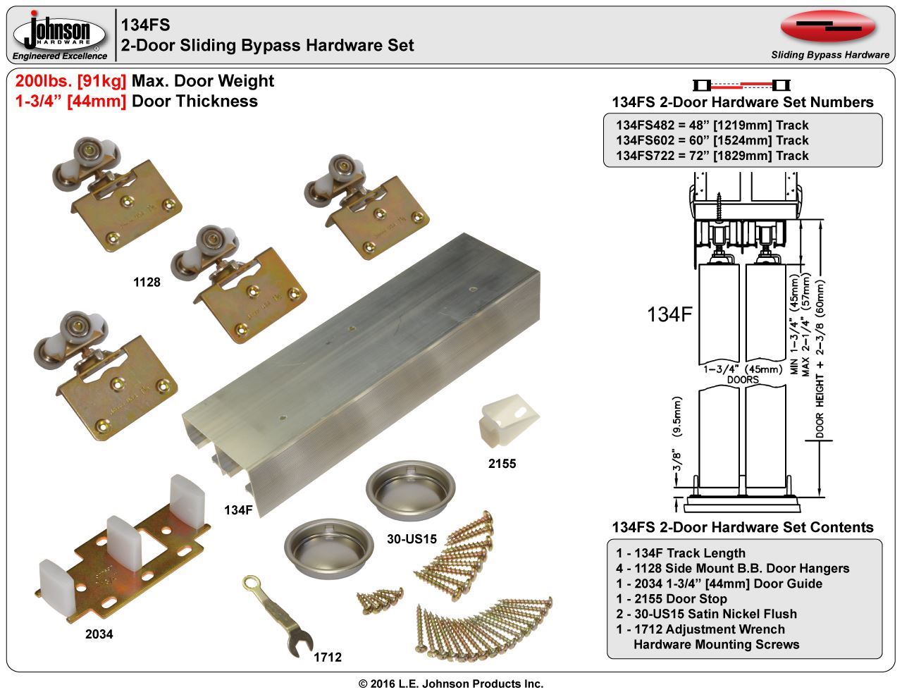 | Door Thickness | 1-3/4" [44mm] |