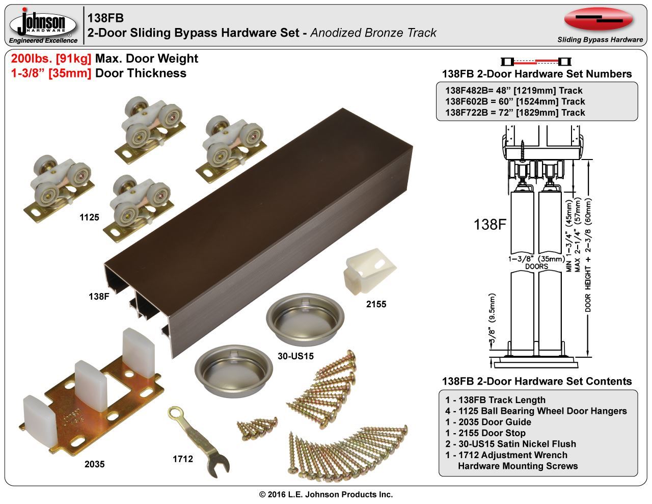 | Max. Weight Per Door | 200lbs. [91kg] |
