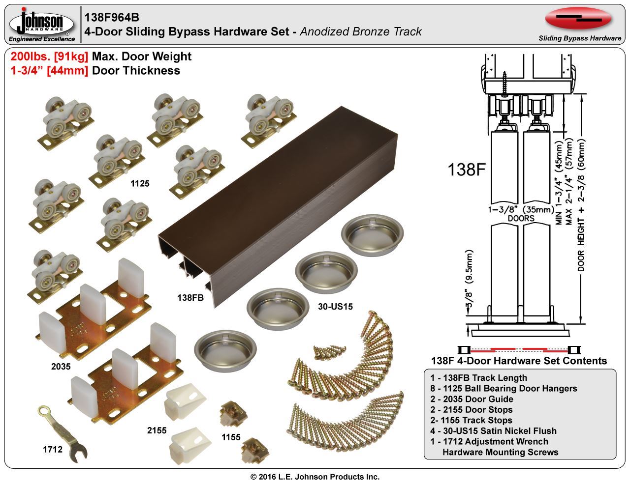 | Max. Weight Per Door | 200lbs. [91kg] |