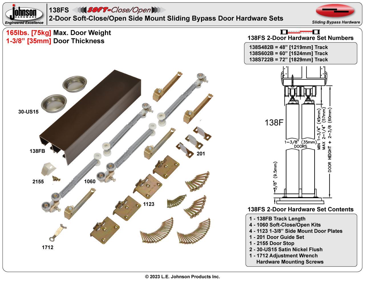 | Door Thickness | 1-3/8" [35mm] |