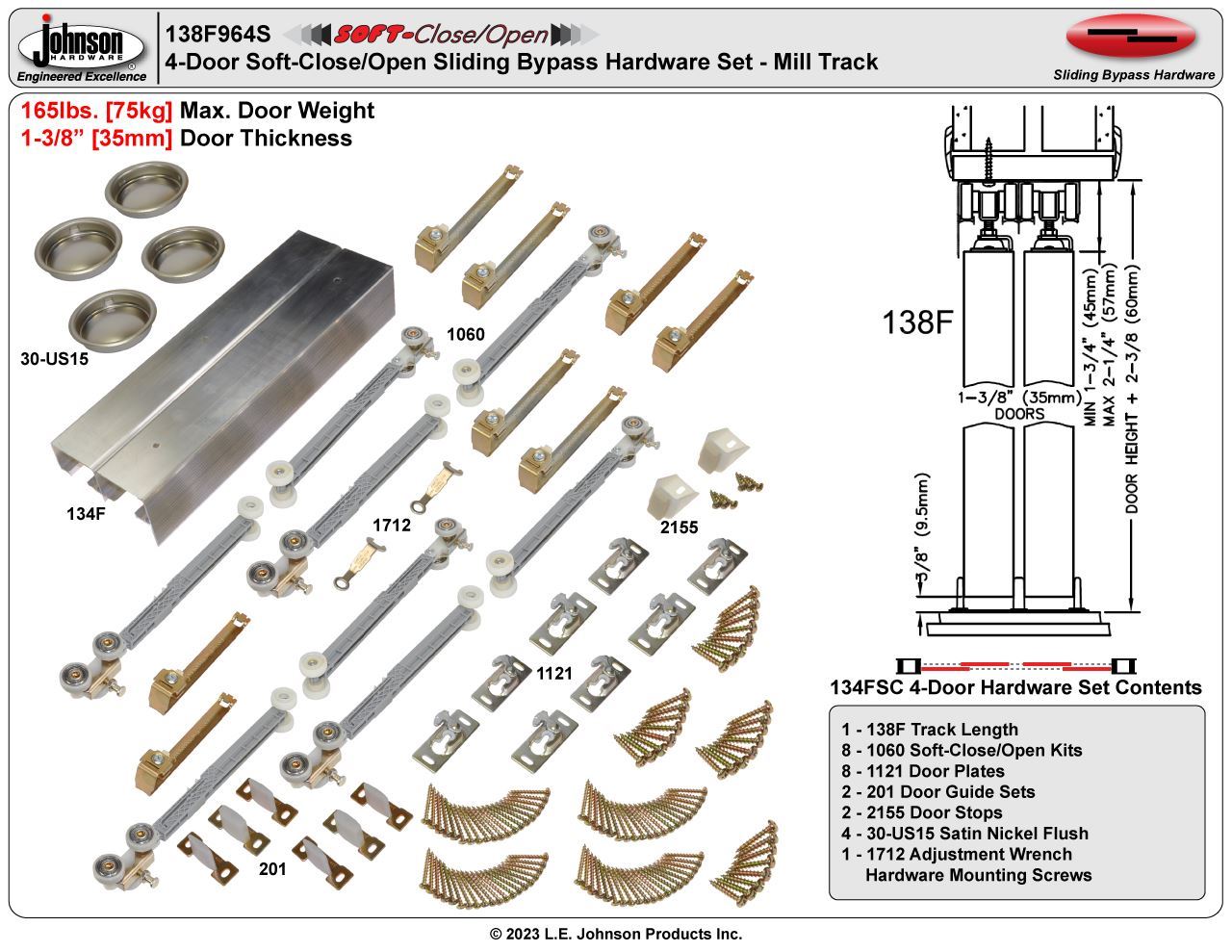 | Max. Weight Per Door | 165lbs. [75kg] |