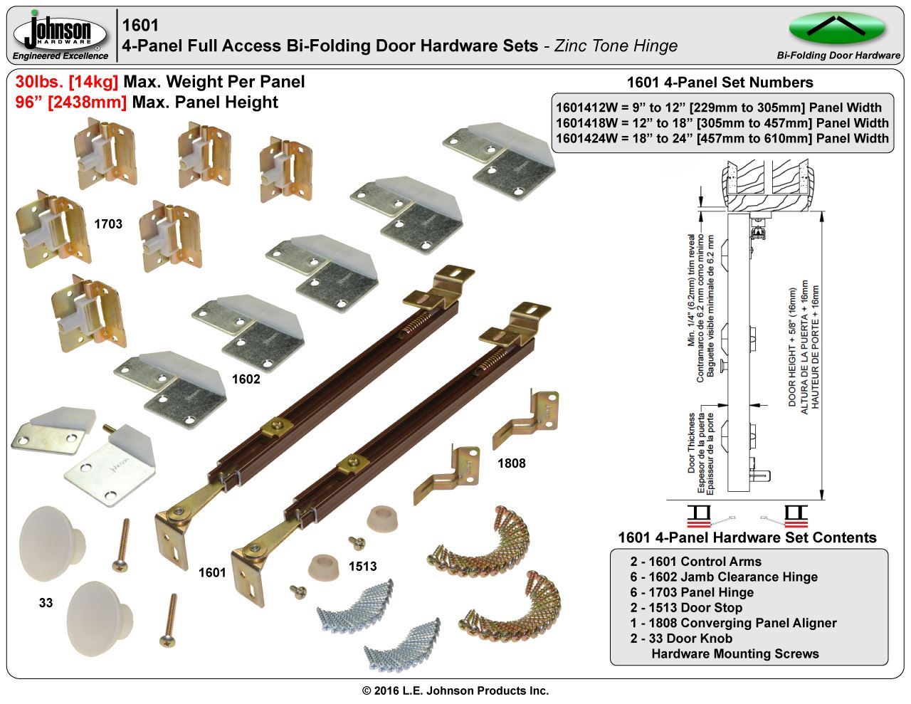 | Hardware Sets | 4-Panel 30lb. Non-Mortise Hinge |