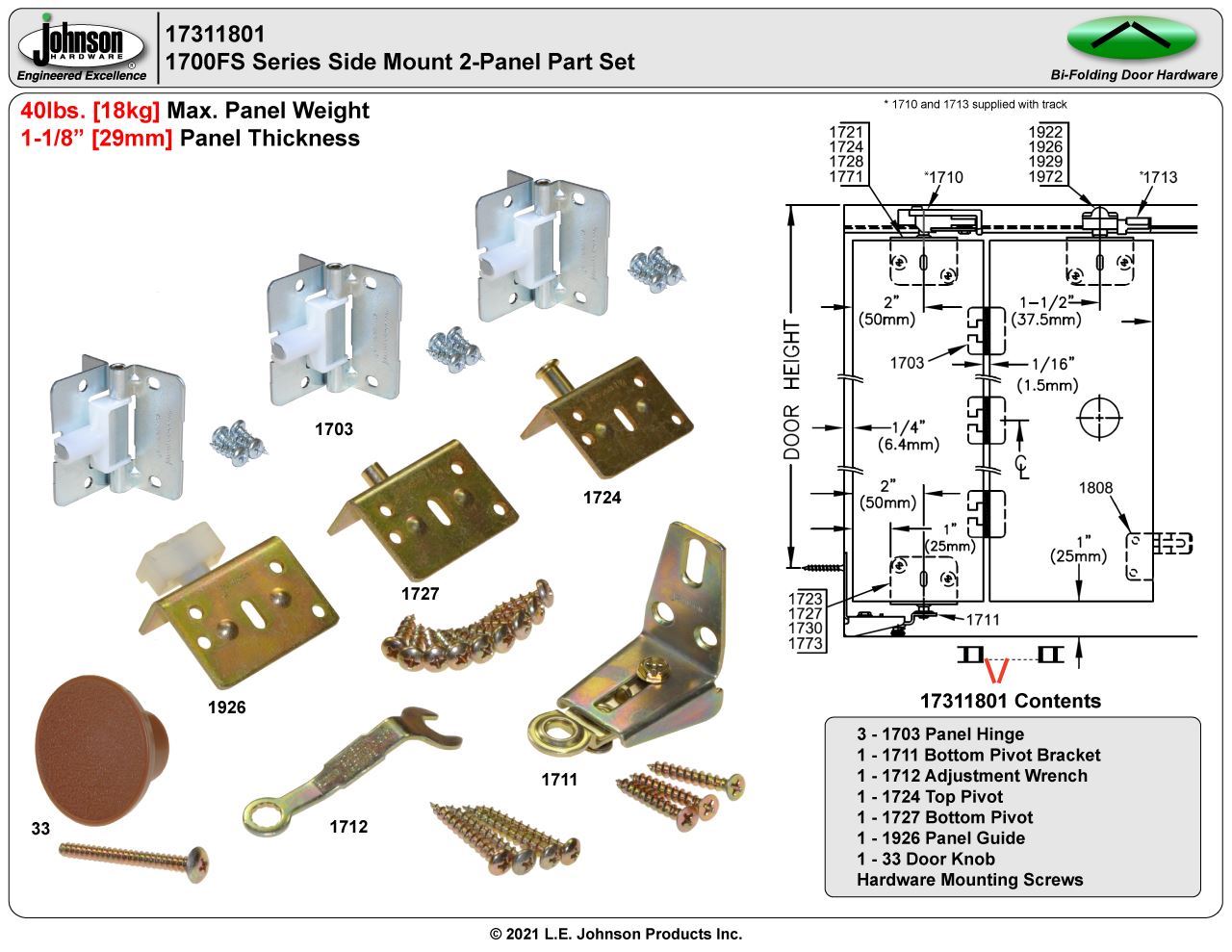 17311801 1700FS 2-Panel Part Set, 1-1/8" [29mm] Door
