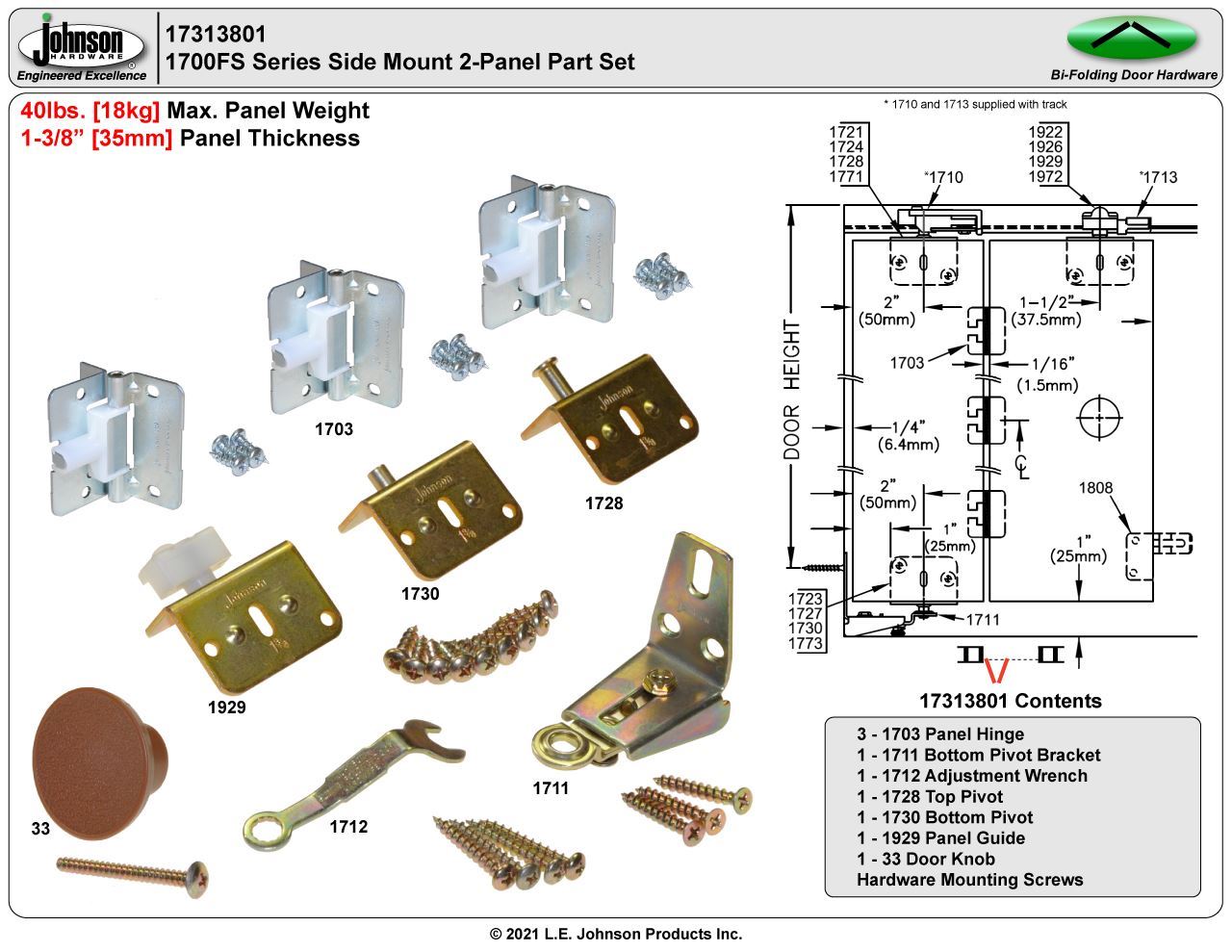 17313801 1700FS 2-Panel Part Set, 1-3/8" [35mm] Door