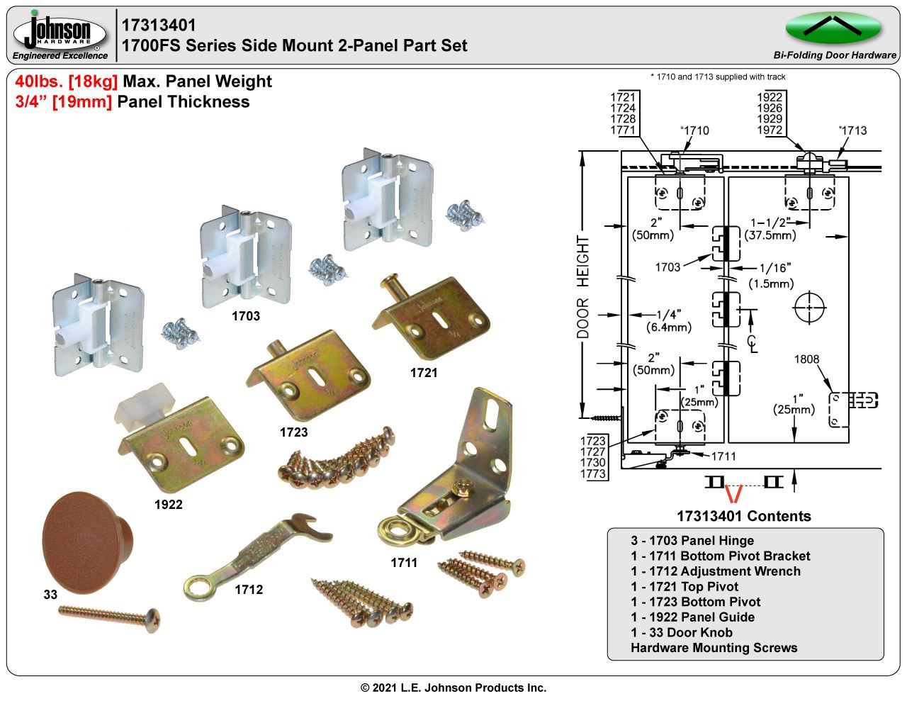 17313401 1700FS 2-Panel Part Set, 3/4" [19mm] Door