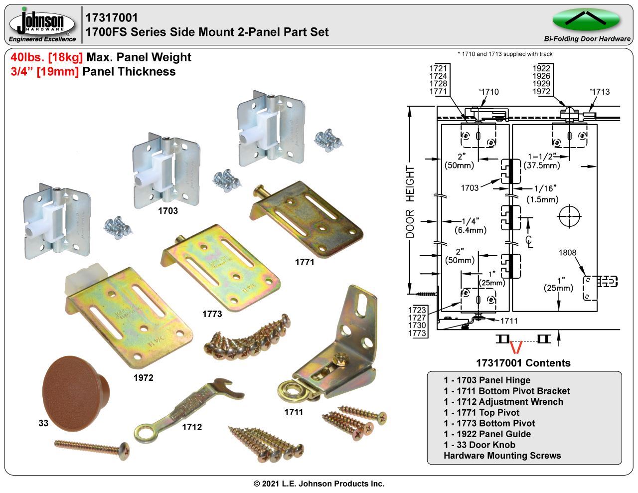 17317001 1700FS 2-Panel Part Set, 3/4" [19mm] Door, Long Plate