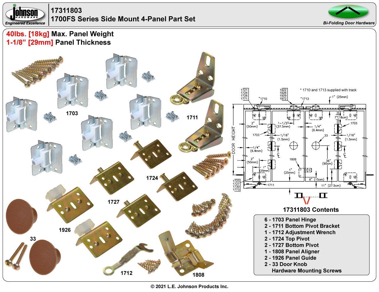17311803 1700FS 4-Panel Part Set, 1-1/8" [29mm] Door