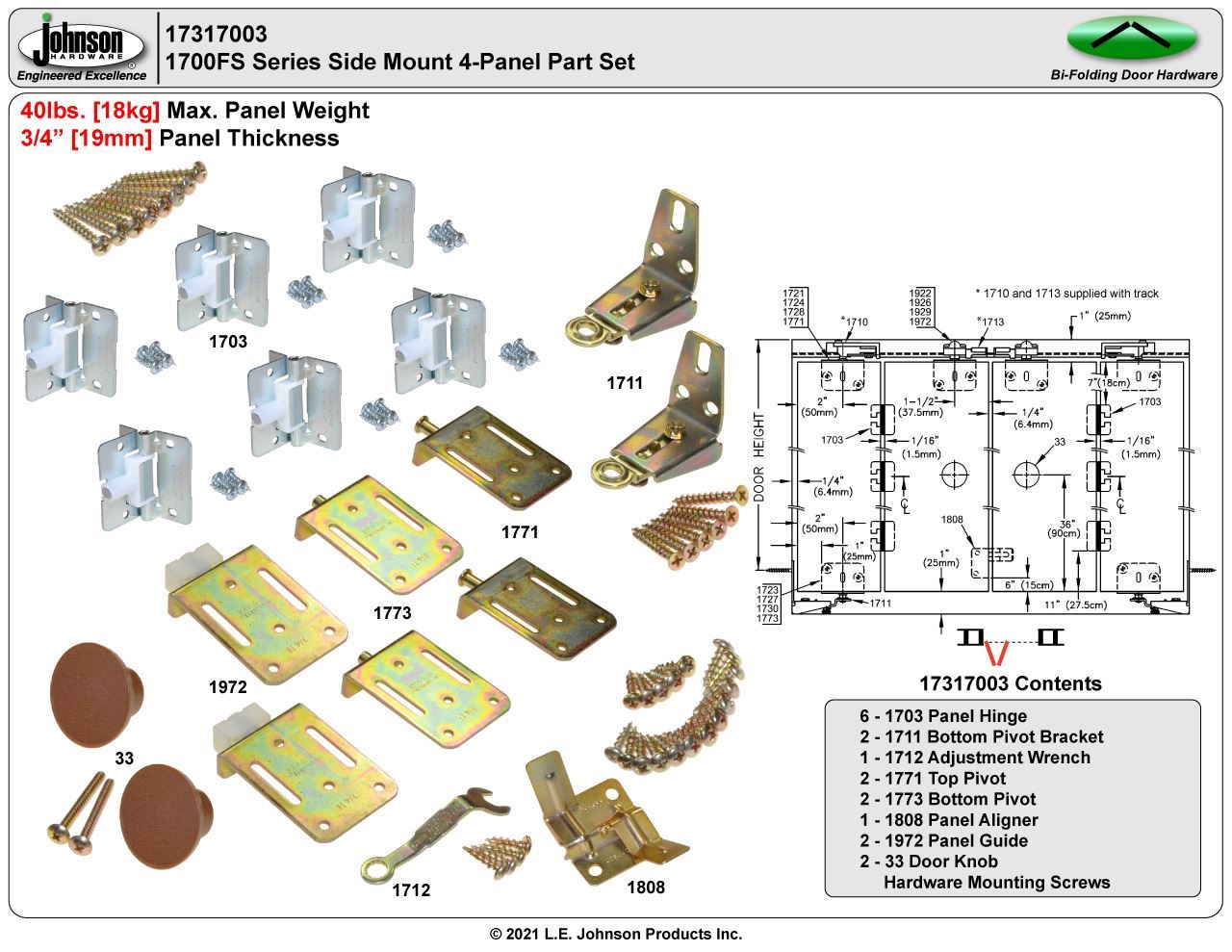 17317003 1700FS 4-Panel Part Set, 3/4" [19mm] Door, Long Plate