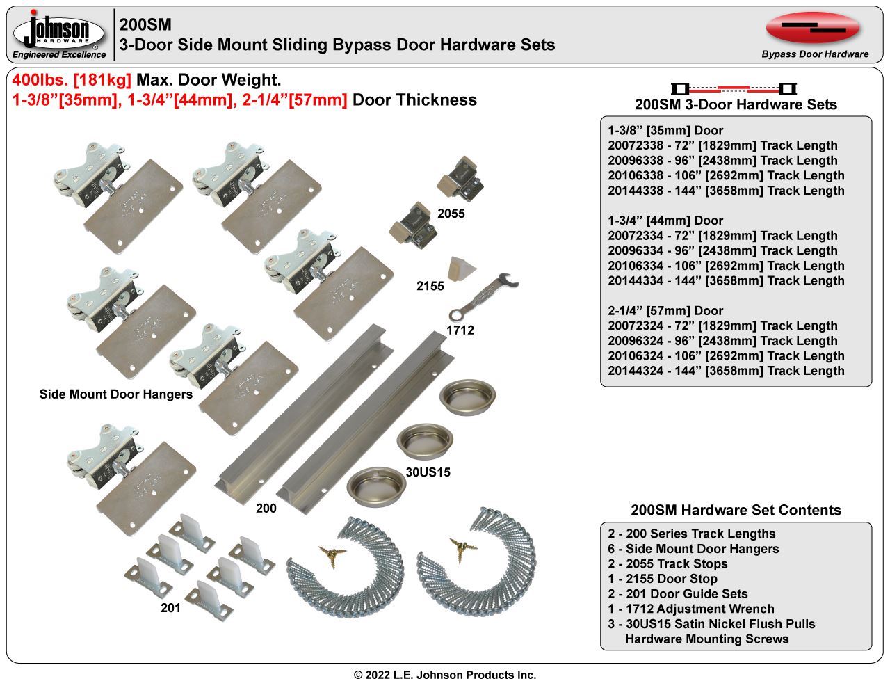 | Hardware Sets | 3-Door |