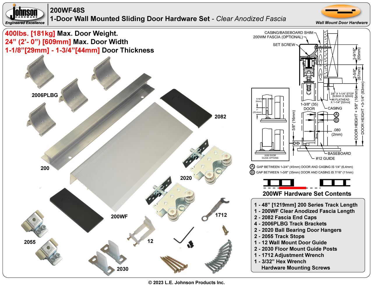 200WF 24" 1-Door Hardware Set, Clear Satin Fascia