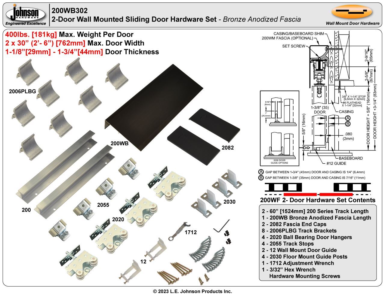 • 30" [762mm] 2/6 x 2 Max. Door Width