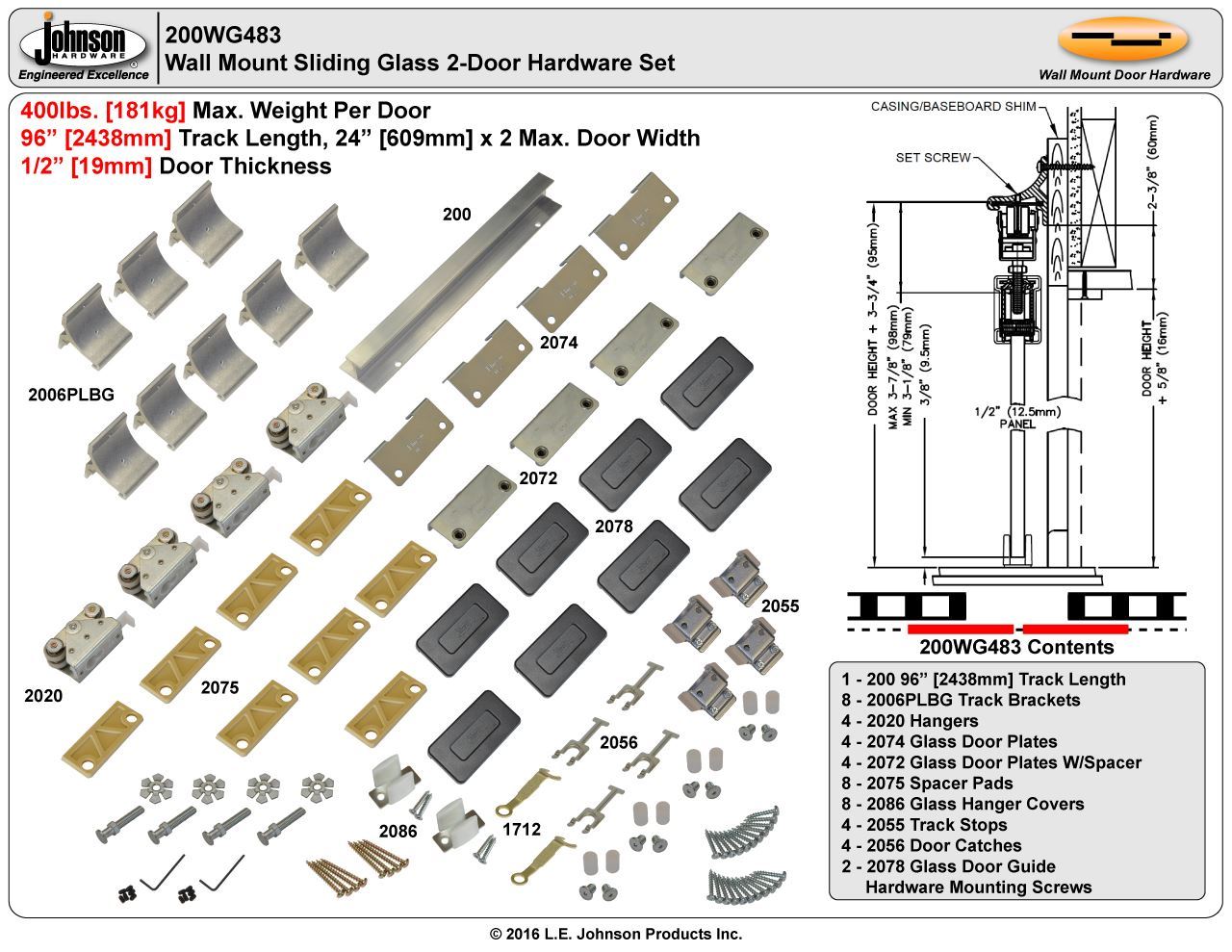 | 200WG Hardware Sets | 2-Door Long Track |