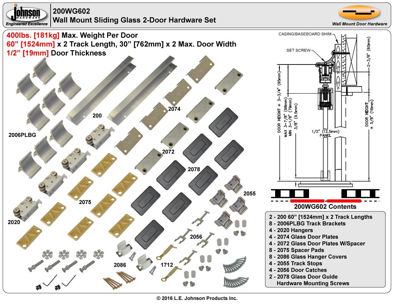 | 200WG Hardware Sets | 2-Door Converging |
