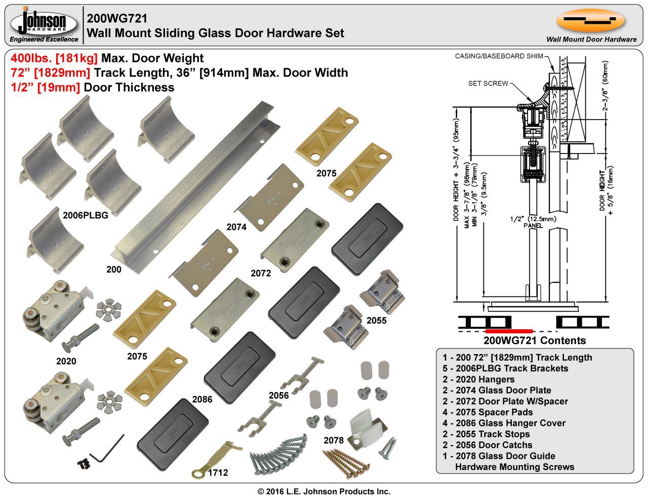 | 200WG Hardware Sets | 1-Door |