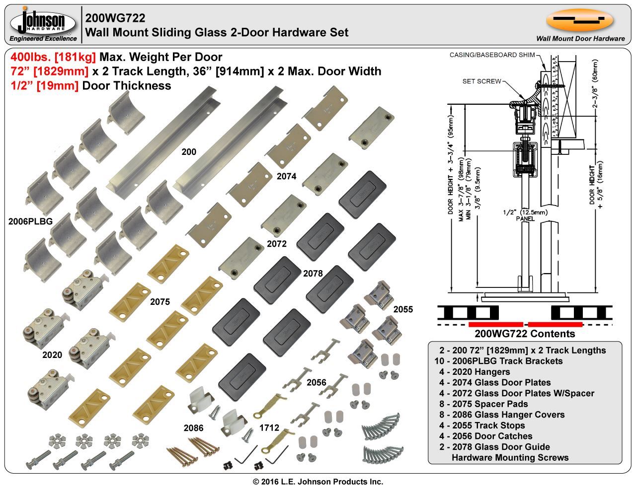 | 200WG Hardware Sets | 2-Door Converging |