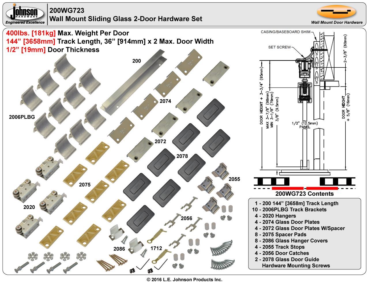 | 200WG Hardware Sets | 2-Door Long Track |