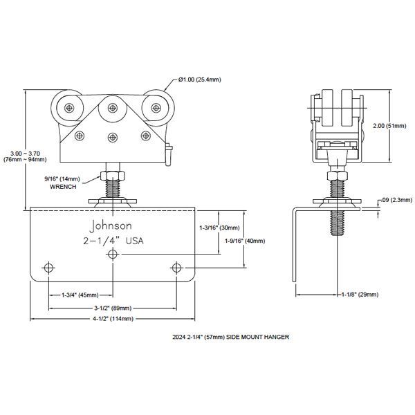 2024 Side Mount 2-1/4" [57mm] Door Hanger