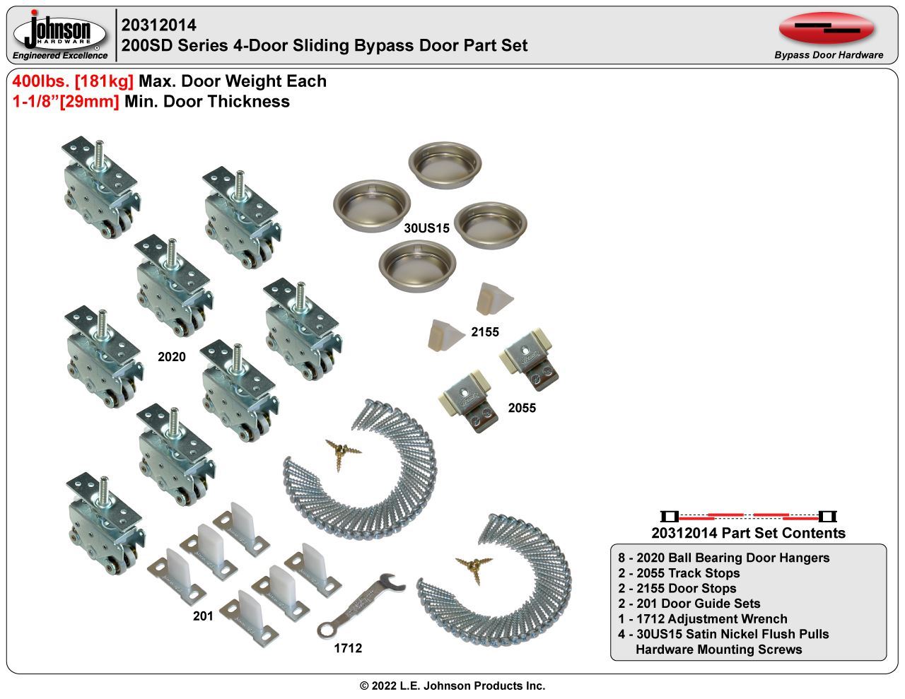 Single Direction Soft Close Kit (2020 Door Hanger NOT included)Single Direction Soft Operation 330lbs. [150kg] Max. Door Weight 200 Series Track Compatibility Compatible with new version 2020 Door Hanger ONLY 2000, 2060 Series Pocket Door Frame Compatibility 200PD, 200BP, 200MP, 200MD, 200SD, 200SM, 200WM, 200WF, 200WG Series Hardware Compatibility 2066 Installation Instructions
