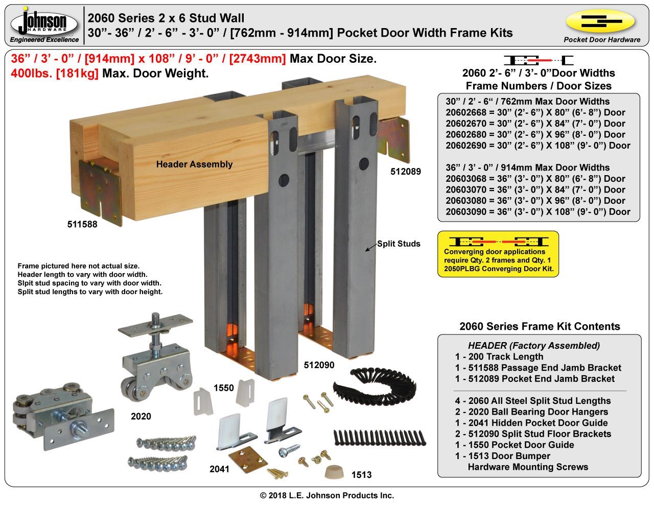 2000/2060 Series Pocket Door Frame Converging Door Kit.