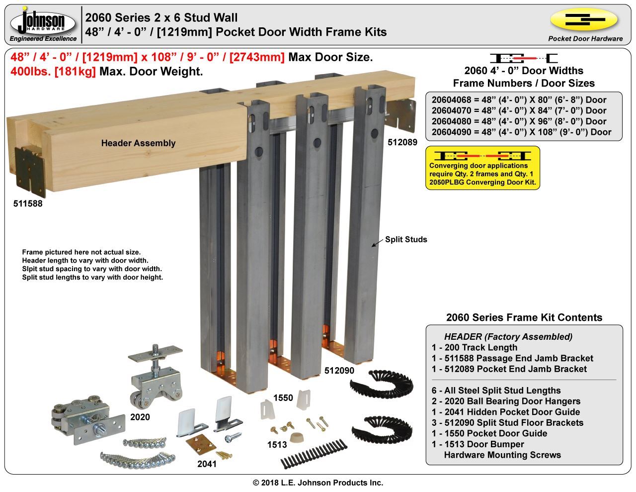 2000/2060 Series Pocket Door Frame Converging Door Kit.