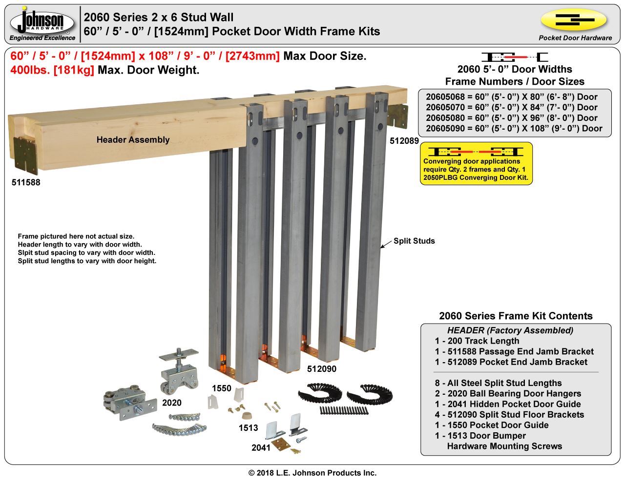 2000/2060 Series Pocket Door Frame Converging Door Kit.