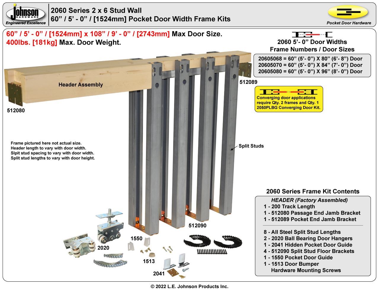 2000/2060 Series Pocket Door Frame Converging Door Kit.