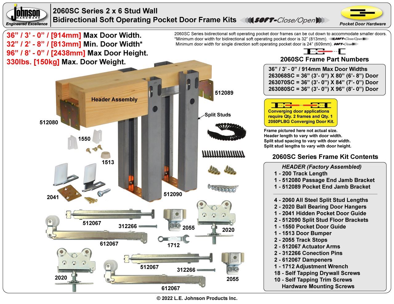 2000/2060 Series Pocket Door Frame Converging Door Kit.