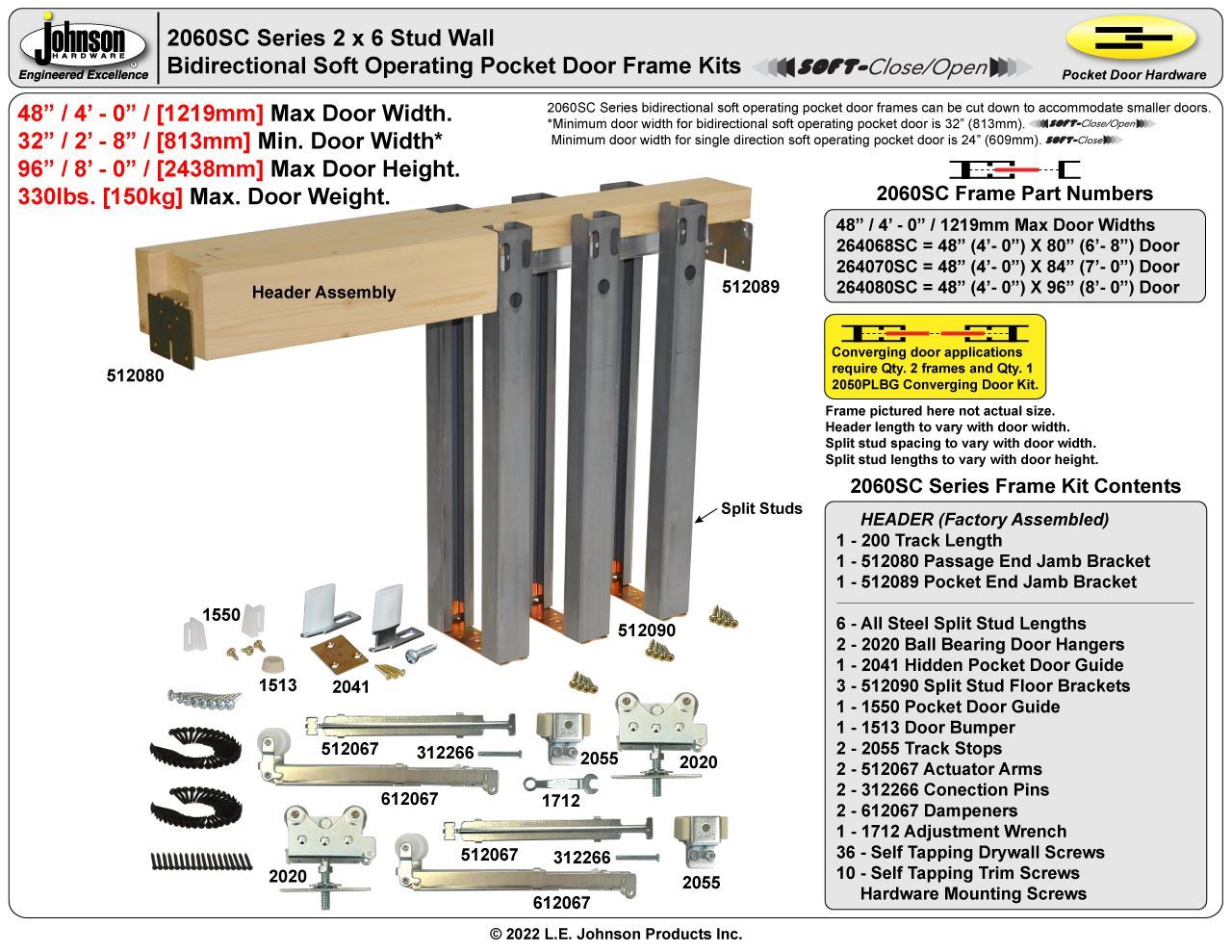 200PD, 200PDSC, 2000, 2000SC, 2060, 2060SC Series Pocket Door Part Set