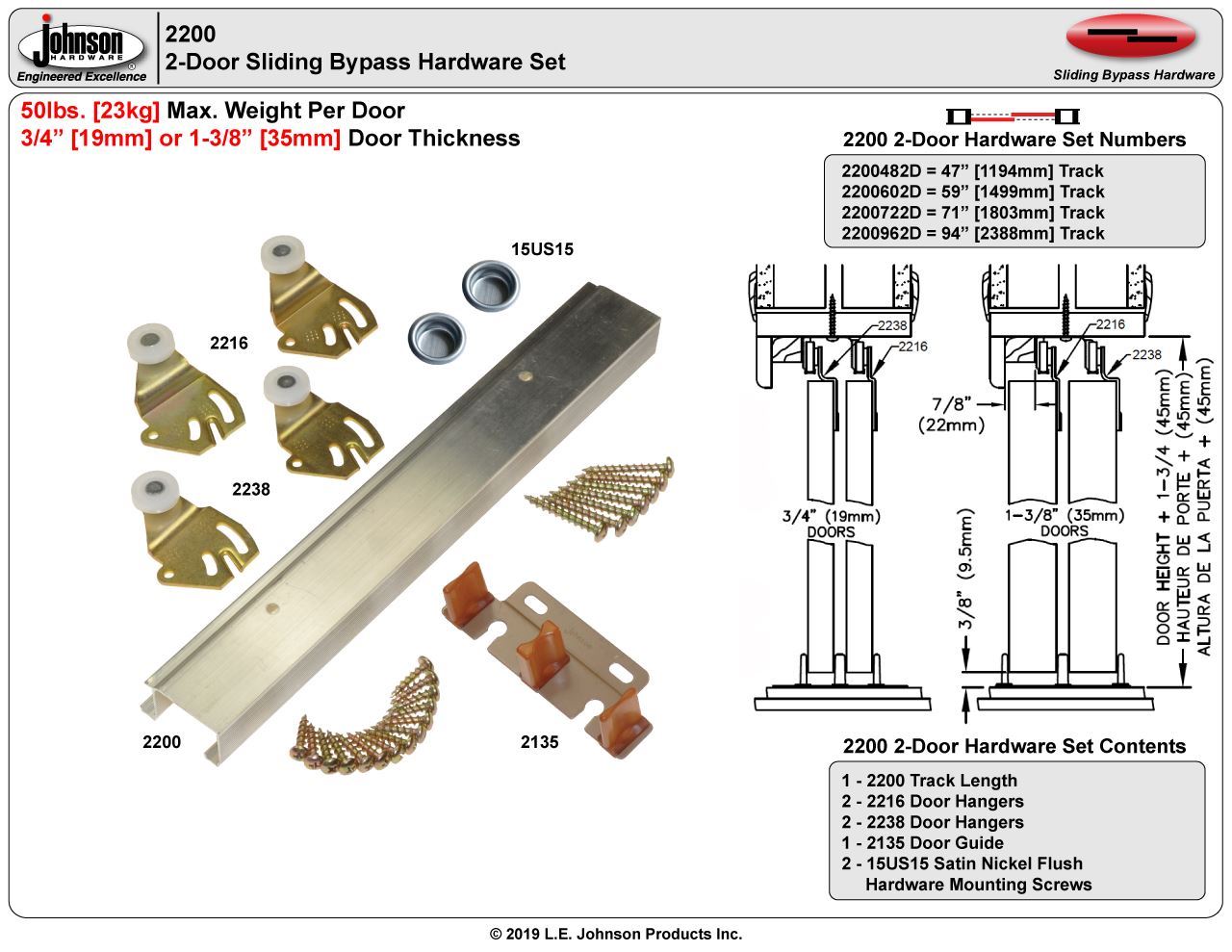 | Max. Weight Per Door | 50lbs. [23kg] |