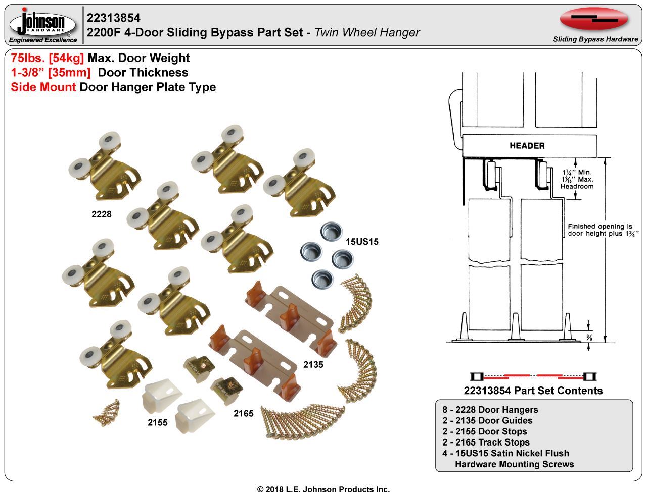 22313854 2200F 4-Door Part Set, Twin Wheel Hanger