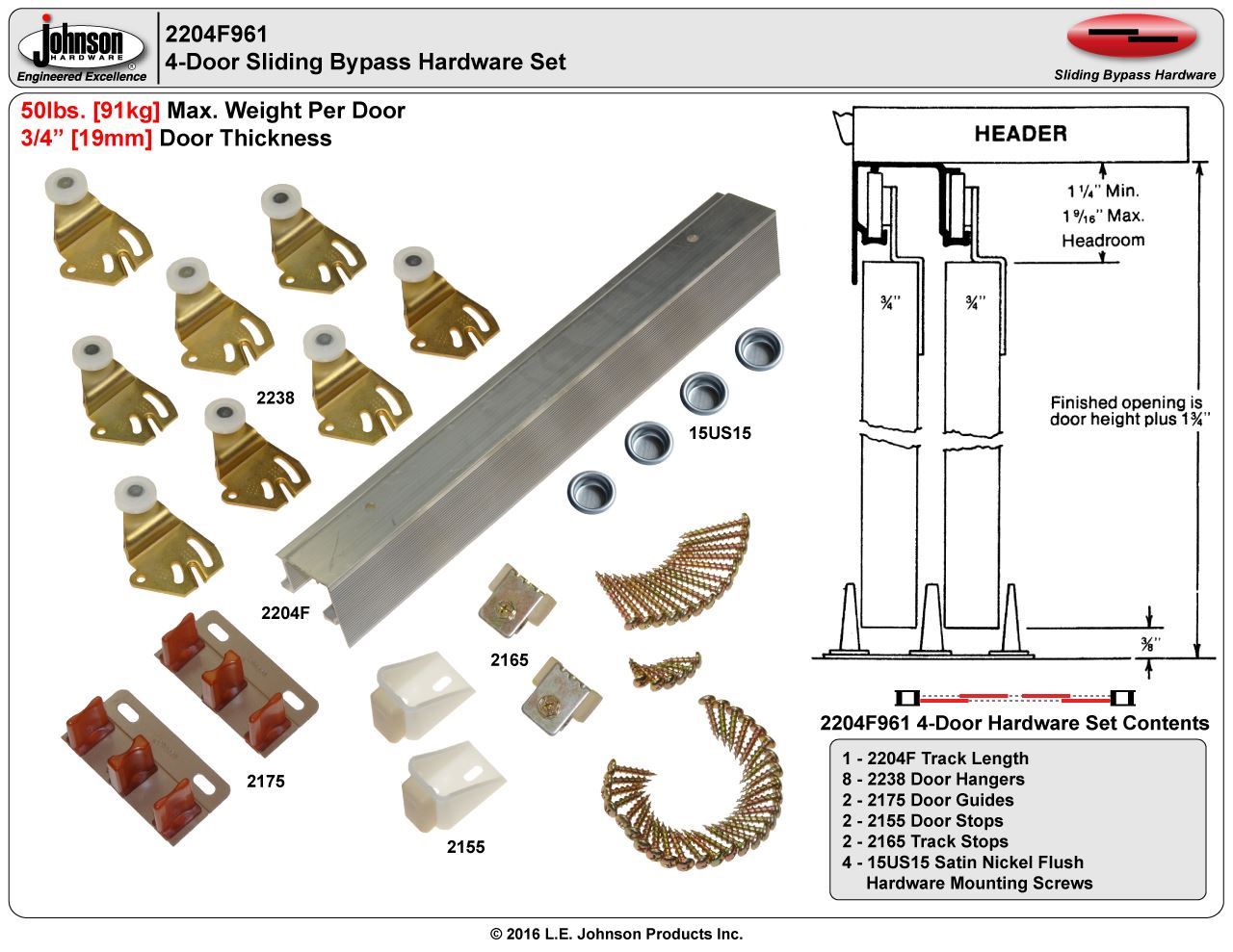 2204F 24" 4-Door Hardware Set, 50lbs. [23kg] Door
