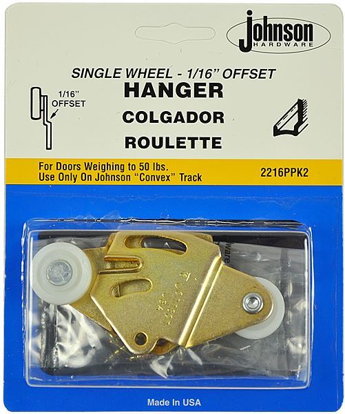 2216PPK2 1/16" Offset Single Wheel Door Hanger Set (2)