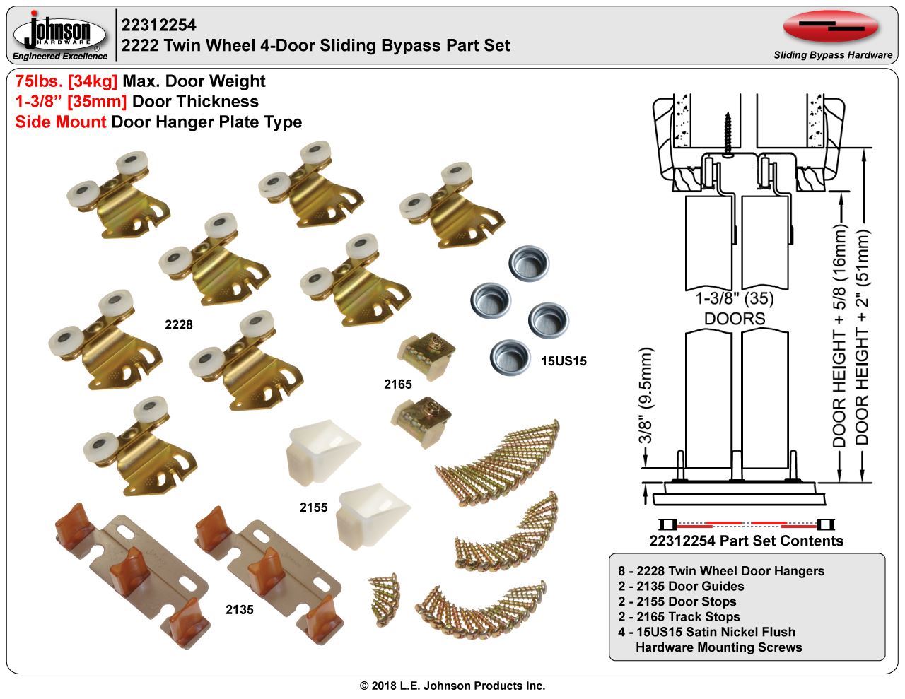 2222 Sliding Bypass Door Hardware